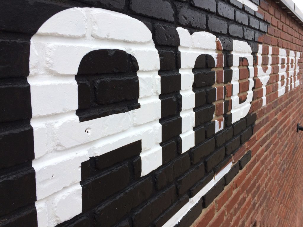 This custom letter style sign was inspired by turn of the century brick wall signs seen around the city. This brewery is located directly across the street from a heritage building with an original sign from that era, which was used to reference the style. It was painted new-looking to acknowledge the establishment as a new addition to the neighbourhood. The idea was to let it age naturally over time and have it eventually “earn” its ghost-sign appearance.